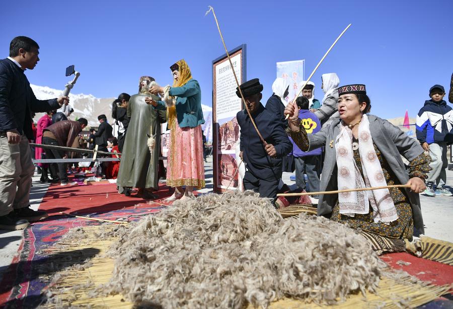 Intangible cultural heritage inheritors demonstrate Tajik wool crafting skills in Taxkorgan Tajik Autonomous County, northwest China's Xinjiang Uygur Autonomous Region, March 23, 2025. (Xinhua/Hu Huhu)Local villagers share food with tourists in Taxkorgan Tajik Autonomous County, northwest China's Xinjiang Uygur Autonomous Region, March 22, 2025. (Xinhua/Xu Hongyan)A tourist takes a selfie in Taxkorgan Tajik Autonomous County, northwest China's Xinjiang Uygur Autonomous Region, March 22, 2025. (Xinhua/Xu Hongyan)■