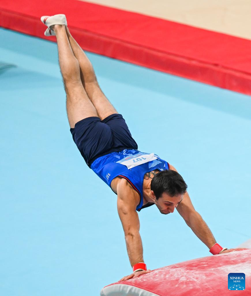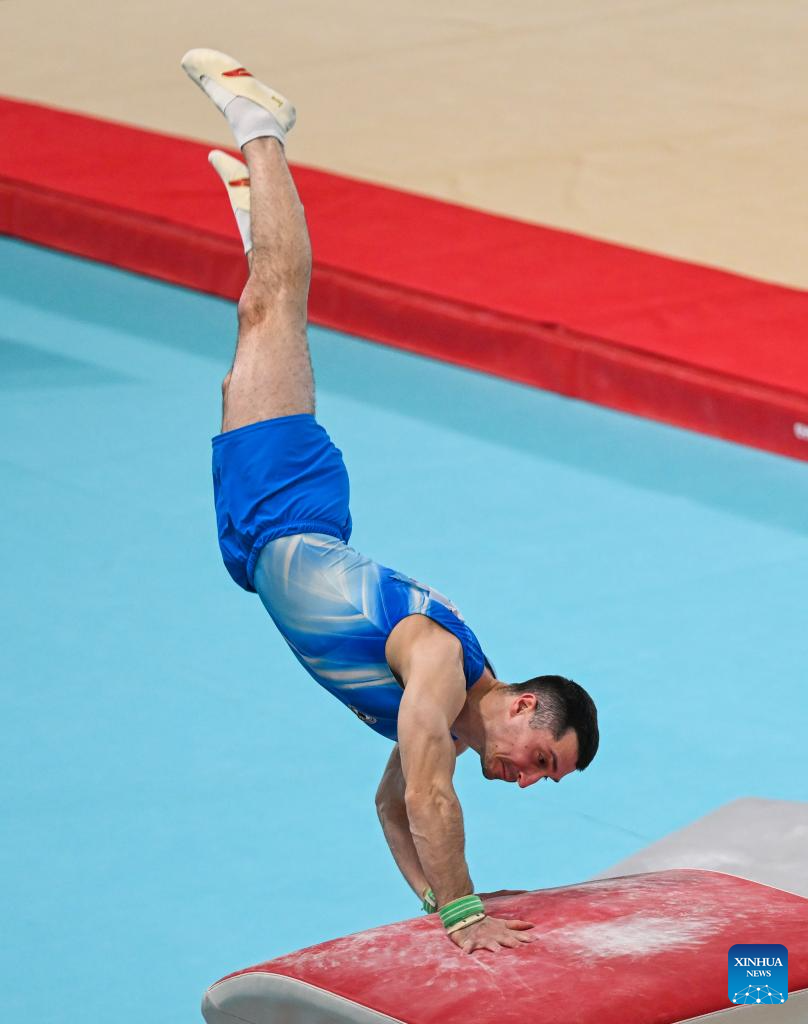 Artur Davtyan of Armenia competes during the men's vault final at the FIG Artistic Gymnastics Apparatus World Cup 2025 in Antalya, Türkiye, March 23, 2025. (Xinhua/Liu Lei)