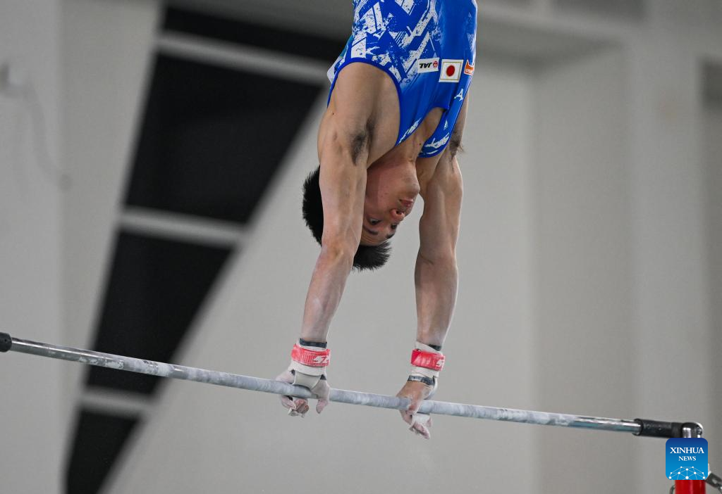 Tanaka Yusuke of Japan competes during the men's horizontal bar final at the FIG Artistic Gymnastics Apparatus World Cup 2025 in Antalya, Türkiye, March 23, 2025. (Xinhua/Liu Lei)