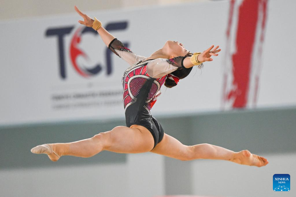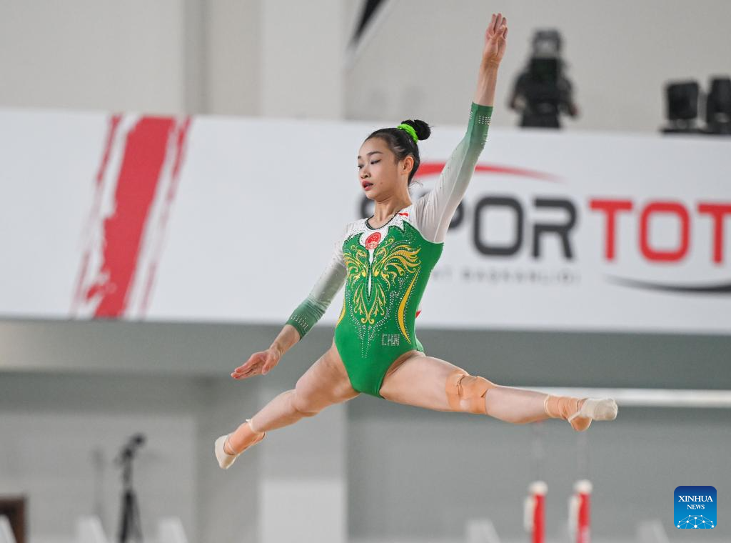 Qin Xinyi of China competes during the women's floor exercise final at the FIG Artistic Gymnastics Apparatus World Cup 2025 in Antalya, Türkiye, March 23, 2025. (Xinhua/Liu Lei)