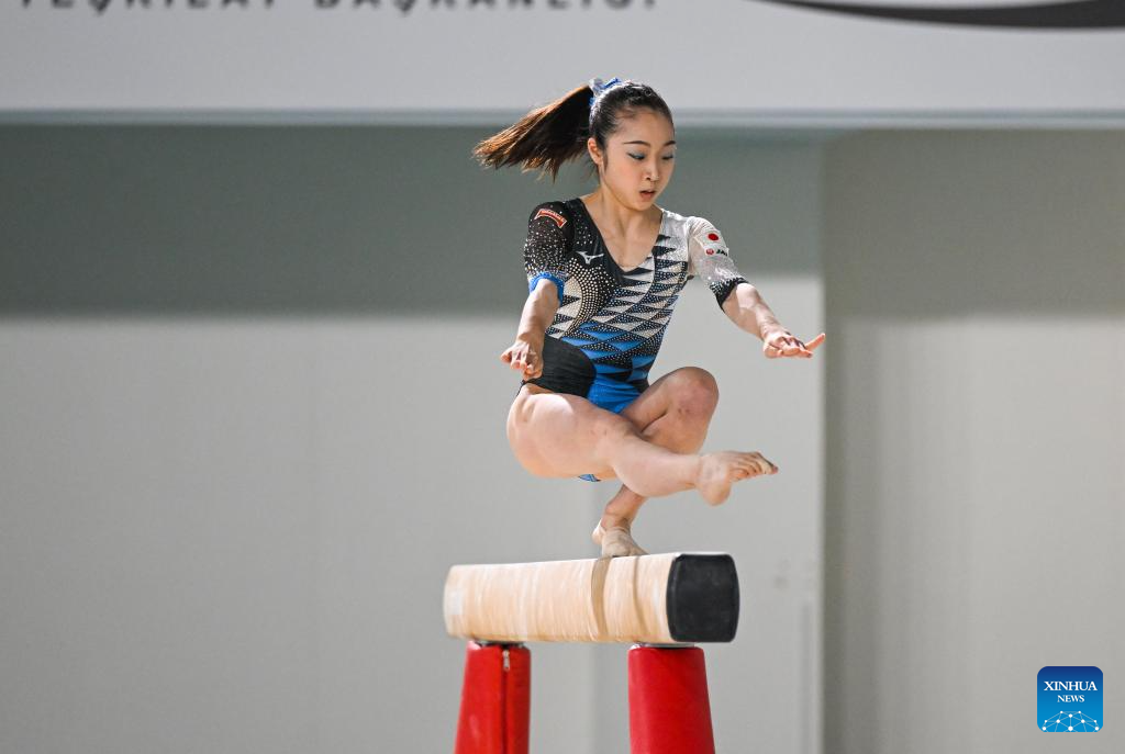 Okamura Mana of Japan competes during the women's balance beam final at the FIG Artistic Gymnastics Apparatus World Cup 2025 in Antalya, Türkiye, March 23, 2025. (Xinhua/Liu Lei)