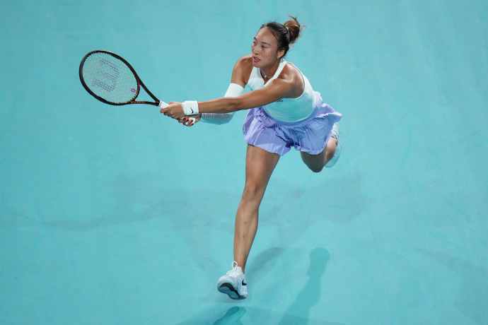 MIAMI, March 24 (Xinhua) -- Zheng Qinwen led the way for China at the Miami Open on Monday, reaching the quarterfinals of the WTA 1000 event with a 6-2, 7-6 (3) victory over America's Ashlyn Krueger.