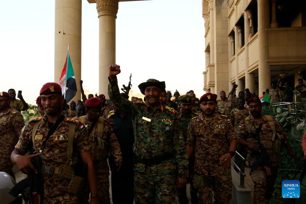 KHARTOUM, March 26 (Xinhua) -- Abdel Fattah Al-Burhan, chairman of Sudan's Transitional Sovereign Council and commander of the Sudanese Armed Forces (SAF), declared from inside the Presidential Palace in Khartoum on Wednesday that "Khartoum is free," referring to the end of the Rapid Support Forces' control over the capital, according to Sudan TV.