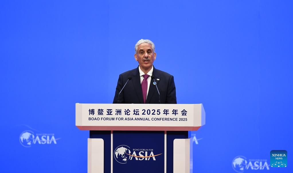 Abdulrahman Al-Fageeh, chief executive officer of Saudi Basic Industries Corporation, speaks at the opening ceremony of the Boao Forum for Asia (BFA) Annual Conference 2025 in Boao, south China's Hainan Province, March 27, 2025. (Xinhua/Yang Guanyu)