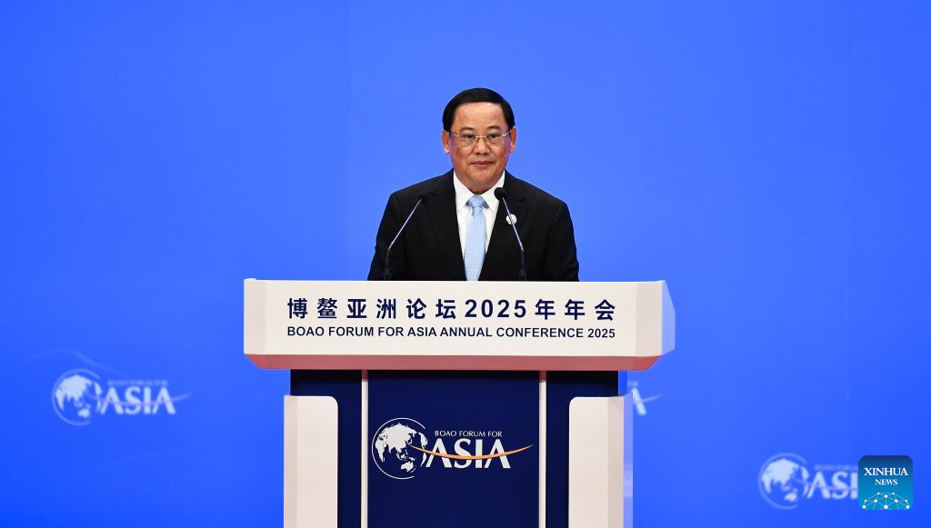 Lao Prime Minister Sonexay Siphandone speaks at the opening ceremony of the Boao Forum for Asia (BFA) Annual Conference 2025 in Boao, south China's Hainan Province, March 27, 2025. (Xinhua/Yang Guanyu)
