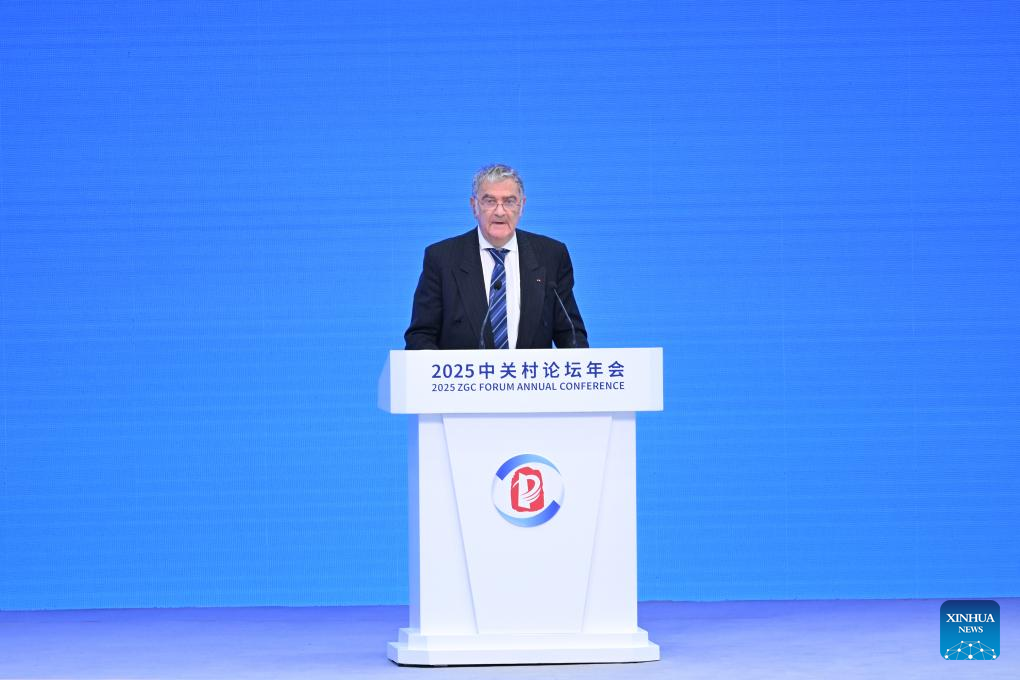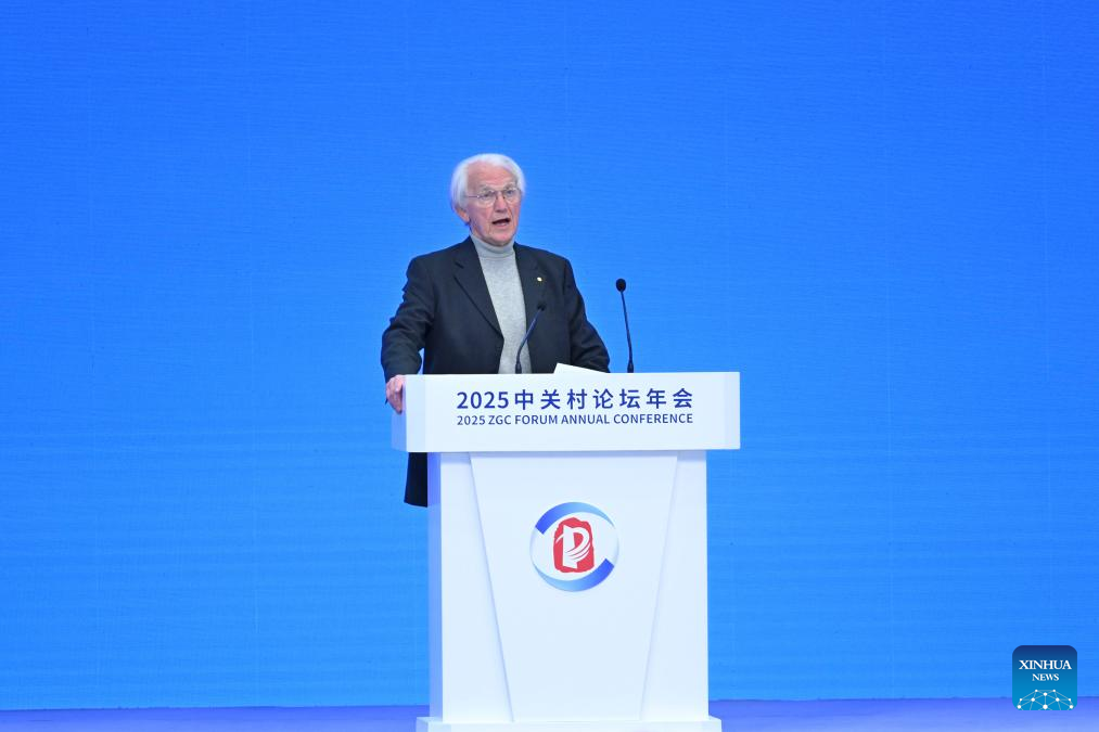 Gerard Albert Mourou, 2018 Nobel Laureate in Physics, delivers a speech during a plenary session of the 2025 Zhongguancun Forum Annual Conference in Beijing, capital of China, March 27, 2025. (Xinhua/Li Xin)