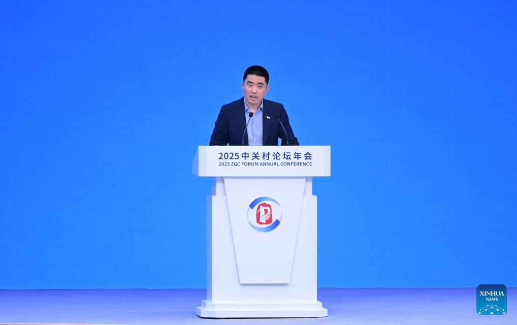 Li Xiang, CEO of Chinese carmaker Li Auto, delivers a speech during a plenary session of the 2025 Zhongguancun Forum Annual Conference in Beijing, capital of China, March 27, 2025. (Xinhua/Li Xin)