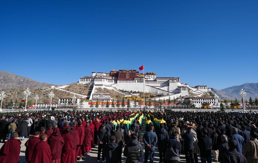 A flag-raising ceremony is held to celebrate the Serfs' Emancipation Day at the square in front of the Potala Palace in Lhasa, capital of southwest China's Xizang Autonomous Region, March 28, 2025. (Xinhua/Jiang Fan)People dance at a park to celebrate the Serfs' Emancipation Day in Lhasa, capital of southwest China's Xizang Autonomous Region, March 28, 2025. (Xinhua/Tenzing Nima Qadhup)A woman dances at a park to celebrate the Serfs' Emancipation Day in Lhasa, capital of southwest China's Xizang Autonomous Region, March 28, 2025. (Xinhua/Tenzin Nyida)People dance at a park to celebrate the Serfs' Emancipation Day in Lhasa, capital of southwest China's Xizang Autonomous Region, March 28, 2025. (Xinhua/Tenzin Nyida)People attend a flag-raising ceremony to celebrate the Serfs' Emancipation Day at the square in front of the Potala Palace in Lhasa, capital of southwest China's Xizang Autonomous Region, March 28, 2025. (Xinhua/Jigme Dorje)This photo taken on March 28, 2025 shows a view of the square in front of the Potala Palace in Lhasa, capital of southwest China's Xizang Autonomous Region. (Xinhua/Jigme Dorje)People dance at a park to celebrate the Serfs' Emancipation Day in Lhasa, capital of southwest China's Xizang Autonomous Region, March 28, 2025. (Xinhua/Tenzing Nima Qadhup)People watch a performance at a park to celebrate the Serfs' Emancipation Day in Lhasa, capital of southwest China's Xizang Autonomous Region, March 28, 2025. (Xinhua/Tenzin Nyida)■