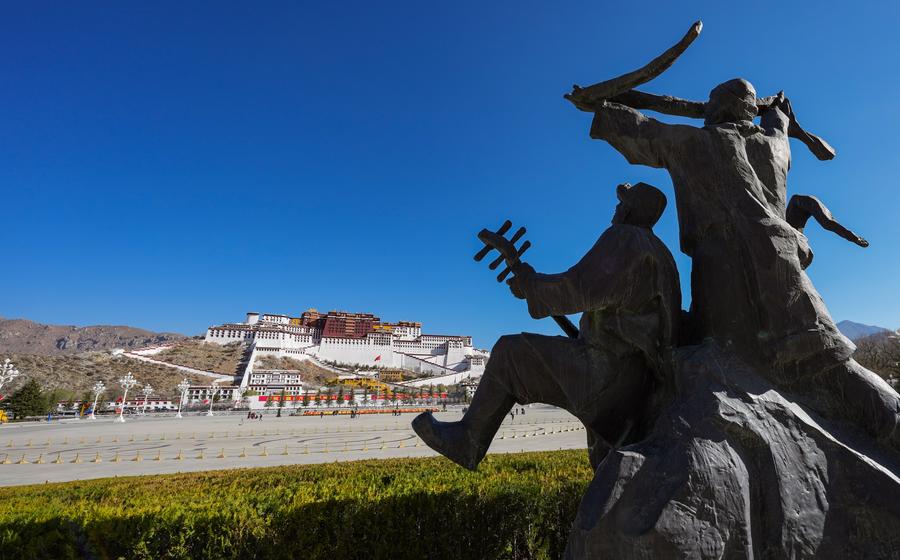 This photo taken on March 28, 2025 shows the square in front of the Potala Palace in Lhasa, capital of southwest China's Xizang Autonomous Region. (Xinhua/Jigme Dorje)