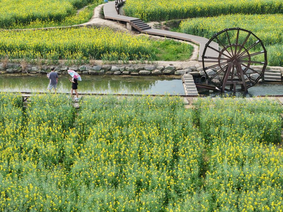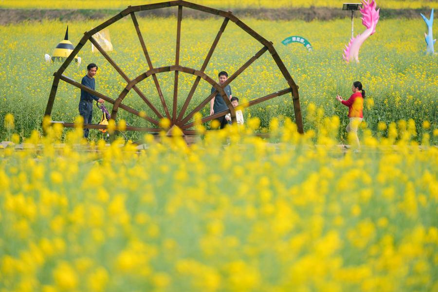 CHANGSHA, March 28 (Xinhua) --In recent years, Chating Town has actively promoted the industrialization of rapeseed cultivation by planting over 10,000 mu (about 666.67 hectares) of rapeseed. Meanwhile, the town has organized various cultural and tourism activities featuring rapeseed flowers, with an aim of integrating local agriculture and culture into tourism for rural revitalization.