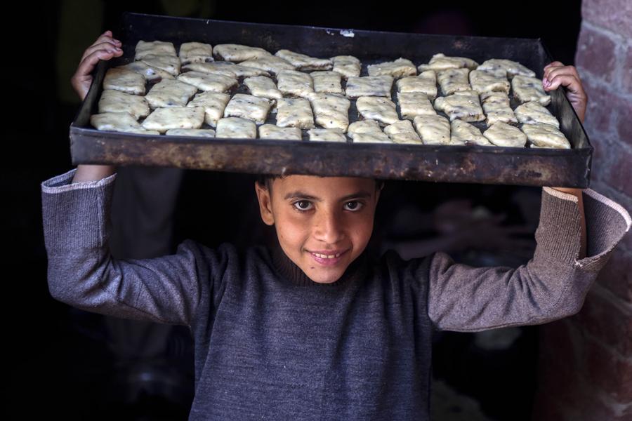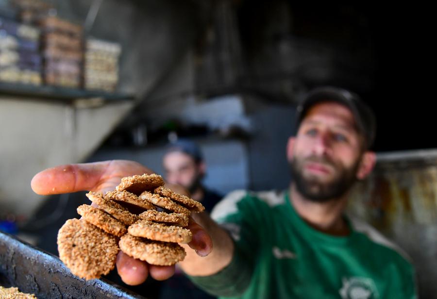 A Palestinian boy shows traditional cookies ahead of Eid al-Fitr, in the West Bank city of Hebron, on March 27, 2025. (Photo by Mamoun Wazwaz/Xinhua)Palestinians prepare traditional cookies ahead of Eid al-Fitr, in the West Bank city of Hebron, on March 27, 2025. (Photo by Mamoun Wazwaz/Xinhua)A man shows freshly baked sesame cookies at a traditional sweets shop in the old market of Damascus, Syria, on March 27, 2025. (Photo by Ammar Safarjalani/Xinhua)Egyptian women make traditional cookies ahead of Eid al-Fitr in Cairo, Egypt, on March 27, 2025. (Xinhua/Ahmed Gomaa)A child carries unfinished traditional cookies ahead of Eid al-Fitr in Cairo, Egypt, on March 27, 2025. (Xinhua/Ahmed Gomaa)■