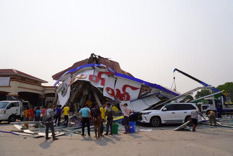 This photo taken on March 28, 2025 shows a damaged building after an earthquake in Nay Pyi Taw, Myanmar. (Xinhua)