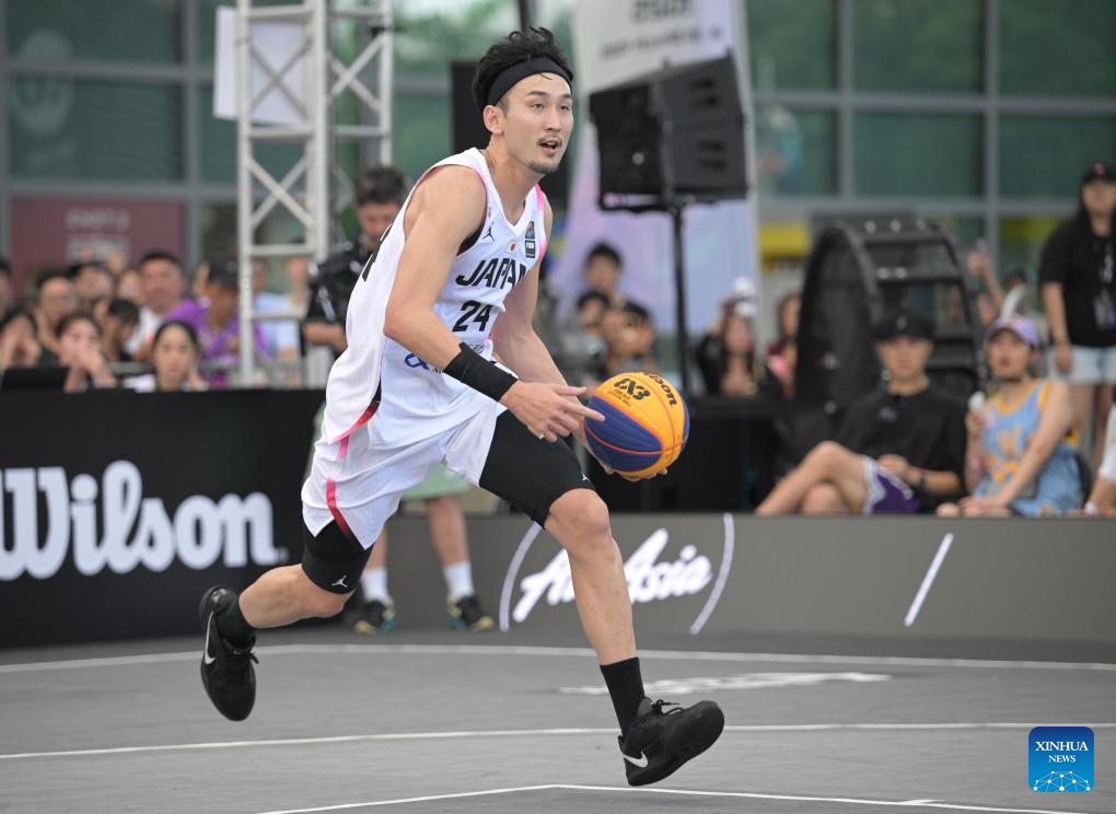 Nakanishi Yuki of Japan dribbles the ball during the FIBA 3x3 Basketball Asia Cup men's quarterfinal match between Japan and Singapore in Singapore, March 30, 2025. (Photo by Then Chih Wey/Xinhua)