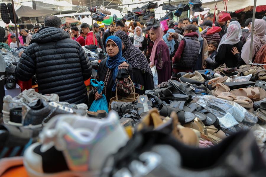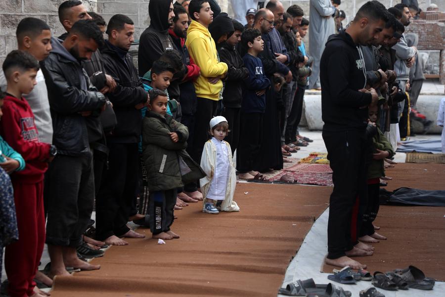 GAZA, March 30 (Xinhua) -- The first day of Eid al-Fitr in the Gaza Strip was clouded by a heavy silence, with no excited children waking their parents to wear new clothes, no bustling streets filled with joy, and no homes brimming with cookies and coffee.