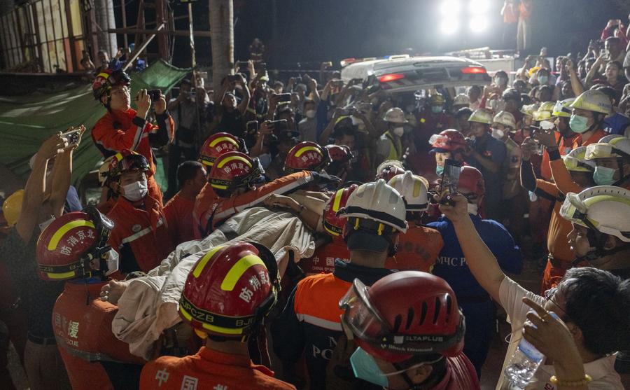 MANDALAY, Myanmar, March 31 (Xinhua) -- China Search and Rescue Team successfully recovered a female survivor at the Great Wall Hotel quake site in Mandalay city, Myanmar, early on Monday.