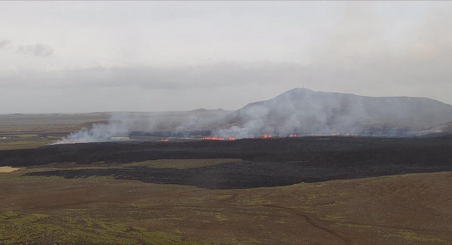 Lava is pouring out at two locations. One is 700 meters long, the other is much smaller. It is however inside the defensive structures protecting Grindavik, said RUV.