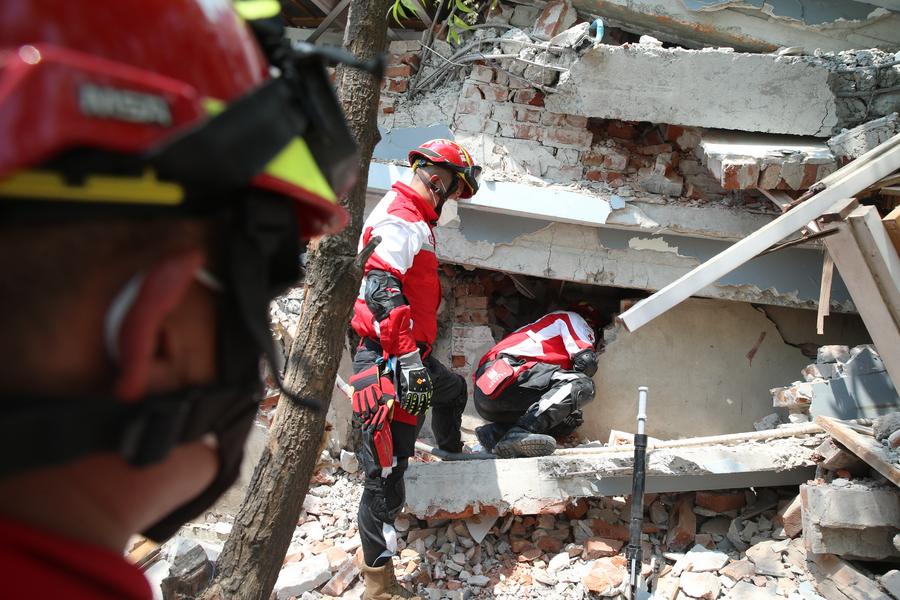 The China Search and Rescue Team, assigned by China's Ministry of Emergency Management, arrived in hard-hit Mandalay in Myanmar at around 17:00 local time on Sunday. Xinhua's reporters were with the team.