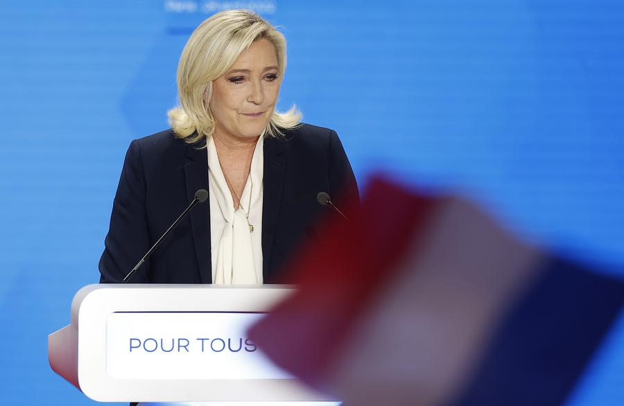 PARIS, April 1 (Xinhua) -- The Paris Court on Monday found Marine Le Pen, leader of the far-right National Rally (RN) party in the French parliament, guilty of embezzling public funds by paying ghost European parliamentary assistants. The ruling immediately bans her from running for public office for five years.