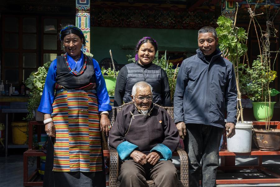 Today, Phurjung lives with family members of four generations in a spacious new house. "We are a family of 10 members with a field of about 1.8 hectares. We have the tractor and the car, and can achieve an annual income of about 300,000 to 400,000 yuan (about 41,337 to 55,116 U.S. dollars)," Phurjung feels satisfied with his life.