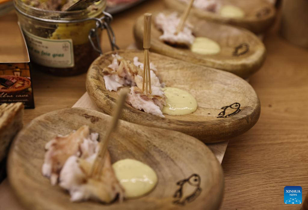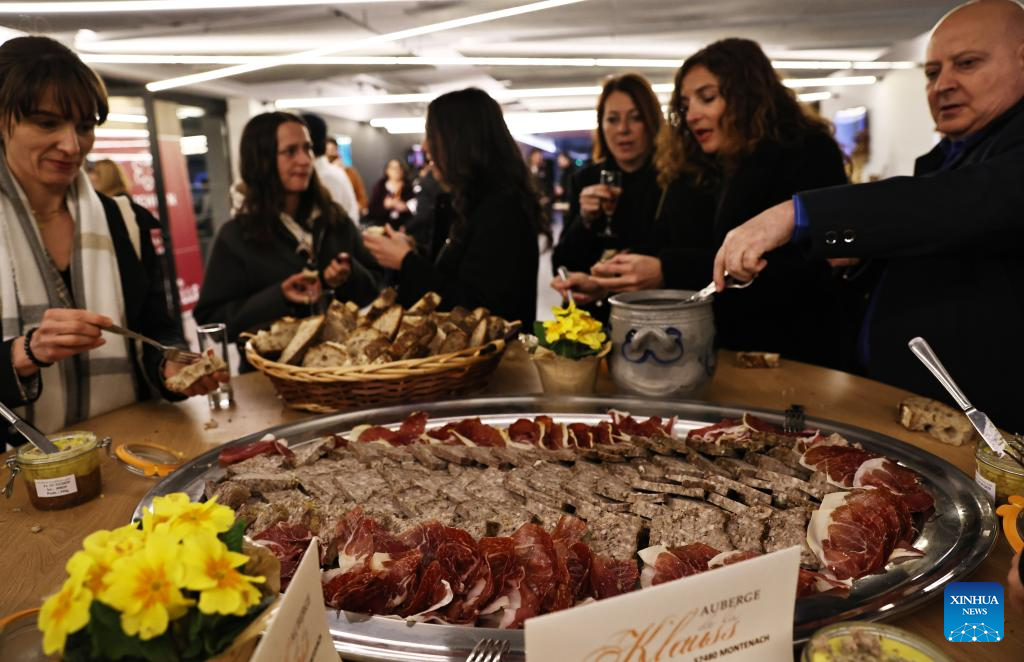 Guests taste local cold cuts at the Chef's dinner organized by the Michelin Guide in Metz, Moselle, the Grand Est Region, France, March 30, 2025. The Michelin Guide France launched its 2025 Ceremony in Metz on Monday. The event unveiled the Michelin Guide France 2025 selection along with a series of celebrations. (Xinhua/Gao Jing)