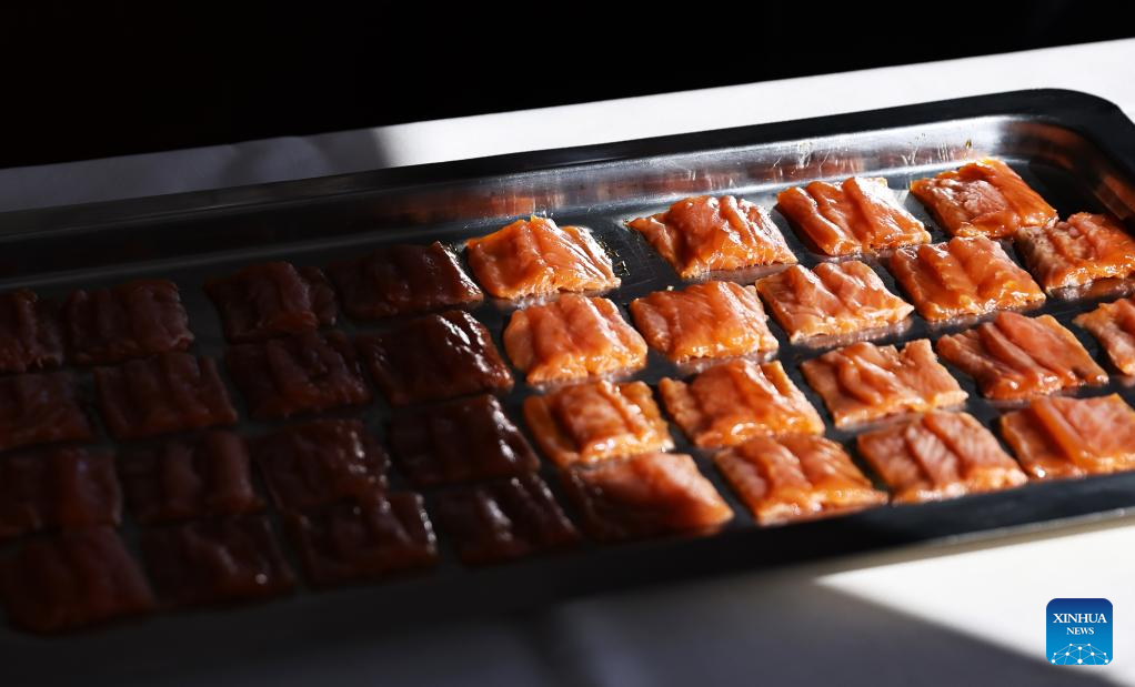 Duck meat is seen at the Chef's dinner organized by the Michelin Guide in Metz, Moselle, the Grand Est Region, France, March 30, 2025. The Michelin Guide France launched its 2025 Ceremony in Metz on Monday. The event unveiled the Michelin Guide France 2025 selection along with a series of celebrations. (Xinhua/Gao Jing)