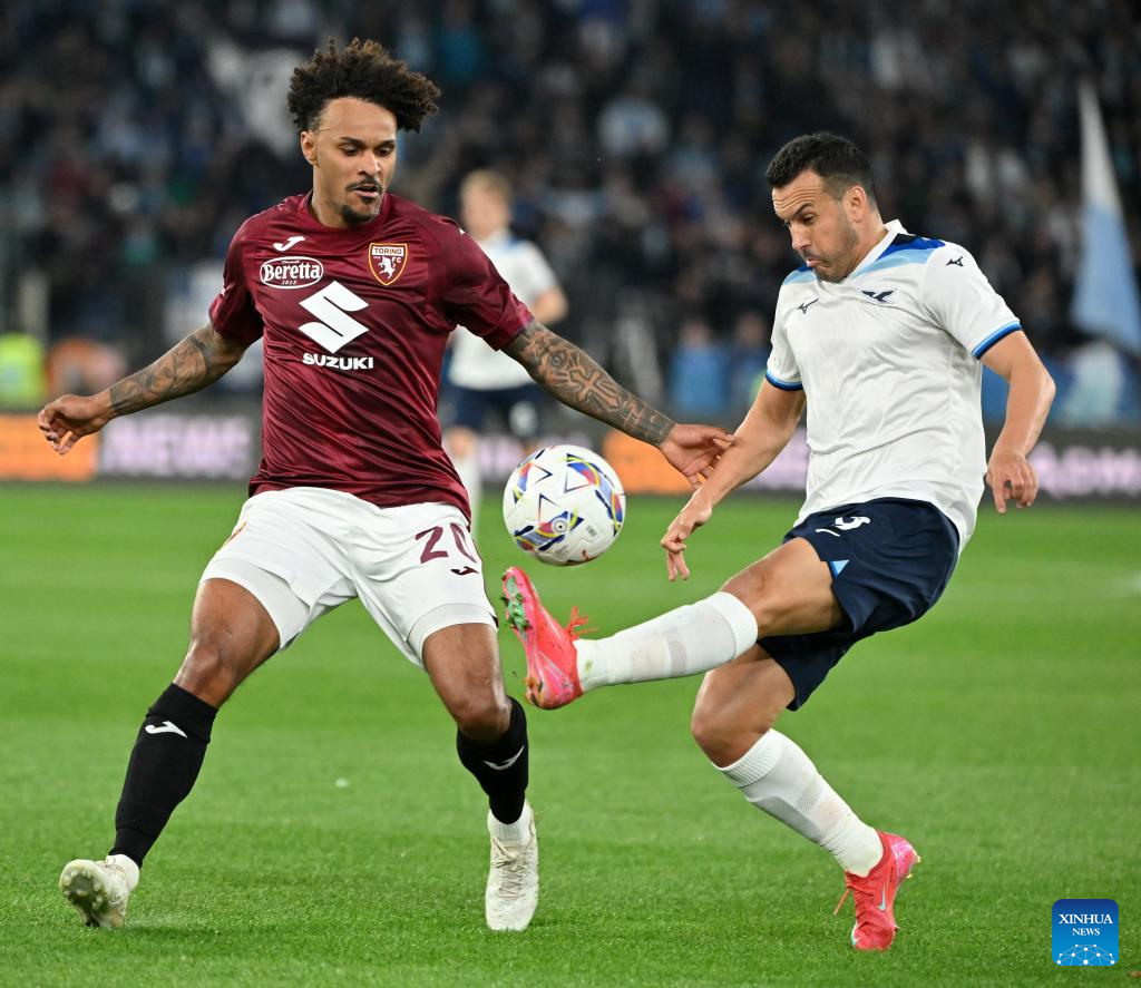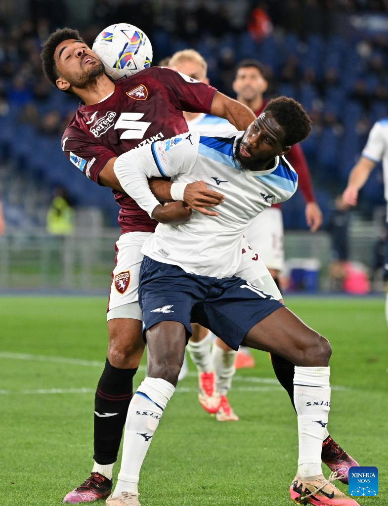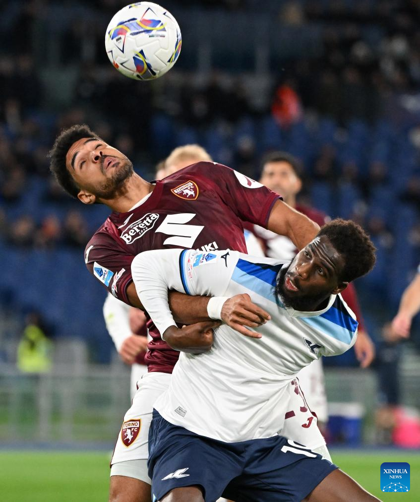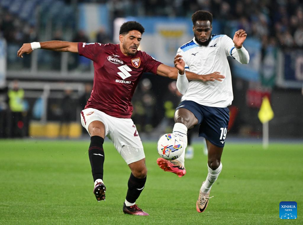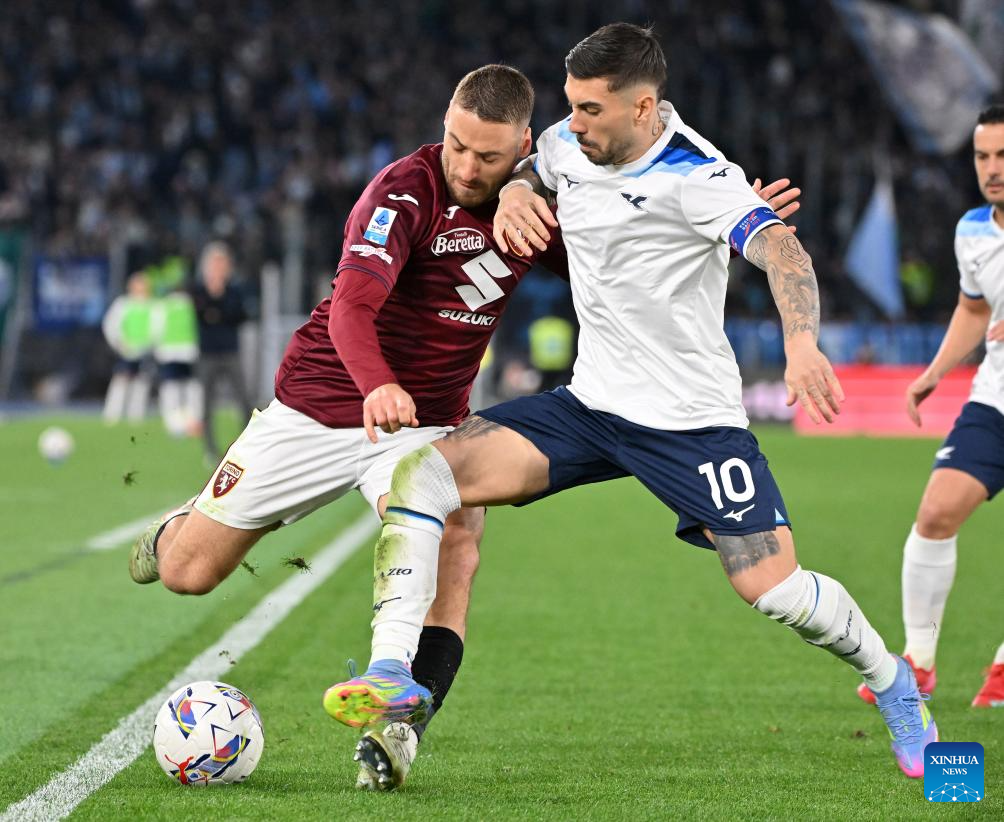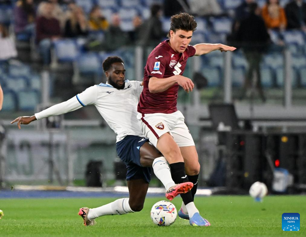Lazio's Boulaye Dia (L) vies with Torino's Cesare Casadei during a Serie A football match between Lazio and Torino in Rome, Italy, March 31, 2025. (Photo by Alberto Lingria/Xinhua)