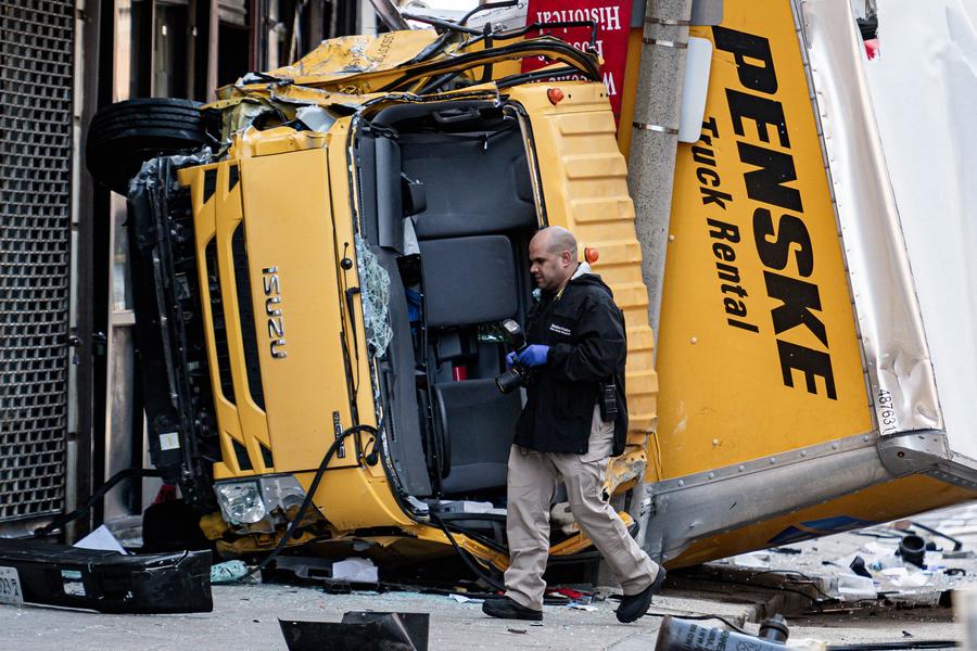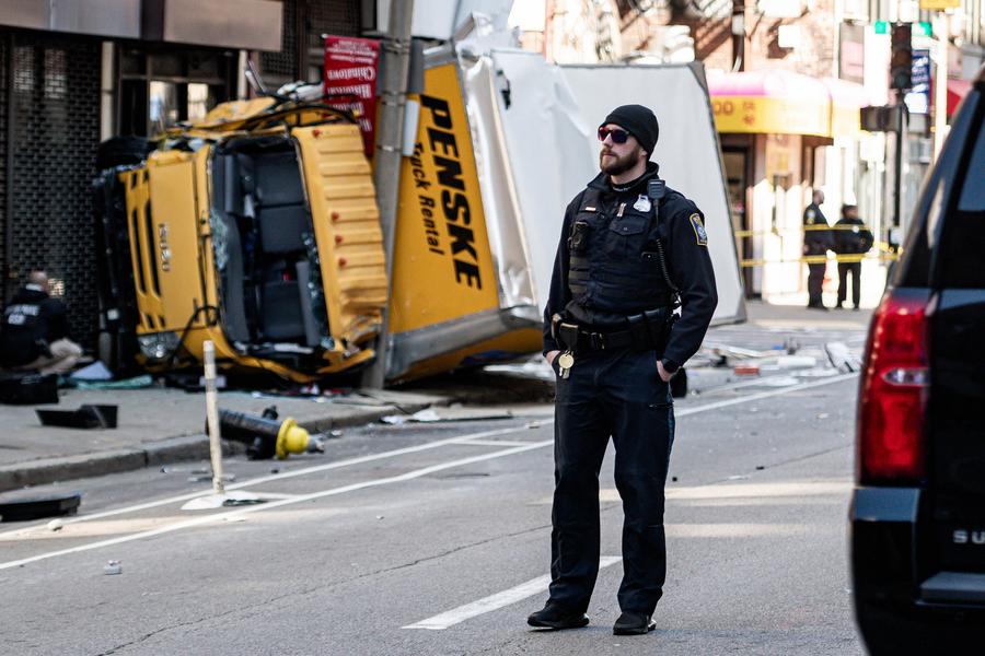 NEW YORK, April 1 (Xinhua) -- A box truck struck multiple pedestrians and crashed into a building in downtown Boston, capital city of the northeastern U.S. state of Massachusetts, on Tuesday afternoon.