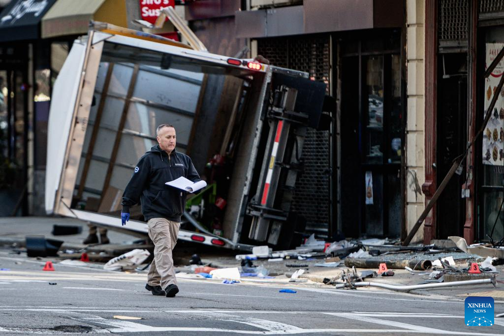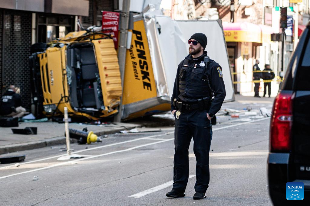 NEW YORK, April 1 (Xinhua) -- A box truck struck multiple pedestrians and crashed into a building in downtown Boston, capital city of the northeastern U.S. state of Massachusetts, on Tuesday afternoon.