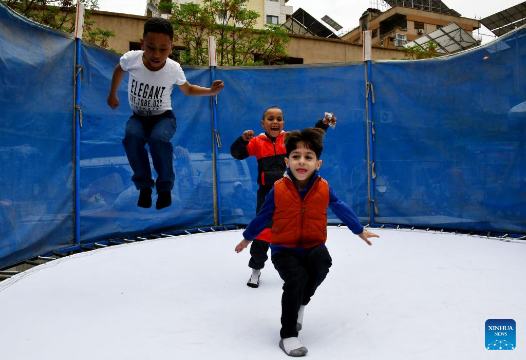 People ride bumper cars at an amusement park during the Eid al-Fitr holiday in Cairo, Egypt, on April 1, 2025. (Xinhua/Ahmed Gomaa)