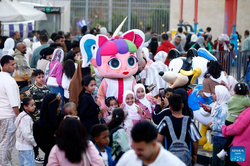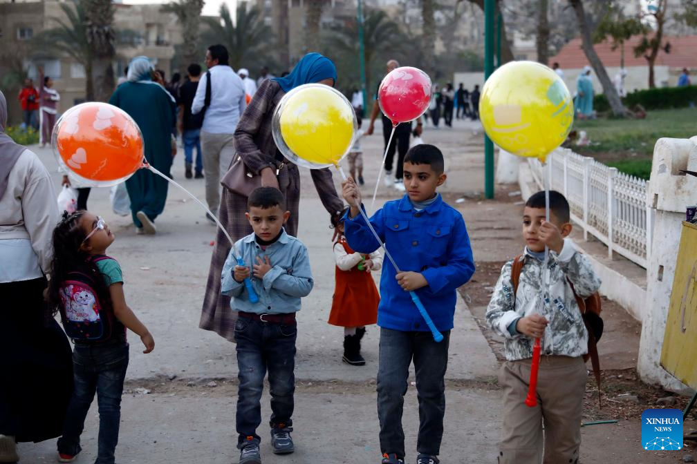 Children hold balloons at an amusement park during the Eid al-Fitr holiday in Cairo, Egypt, on April 1, 2025. (Xinhua/Ahmed Gomaa)