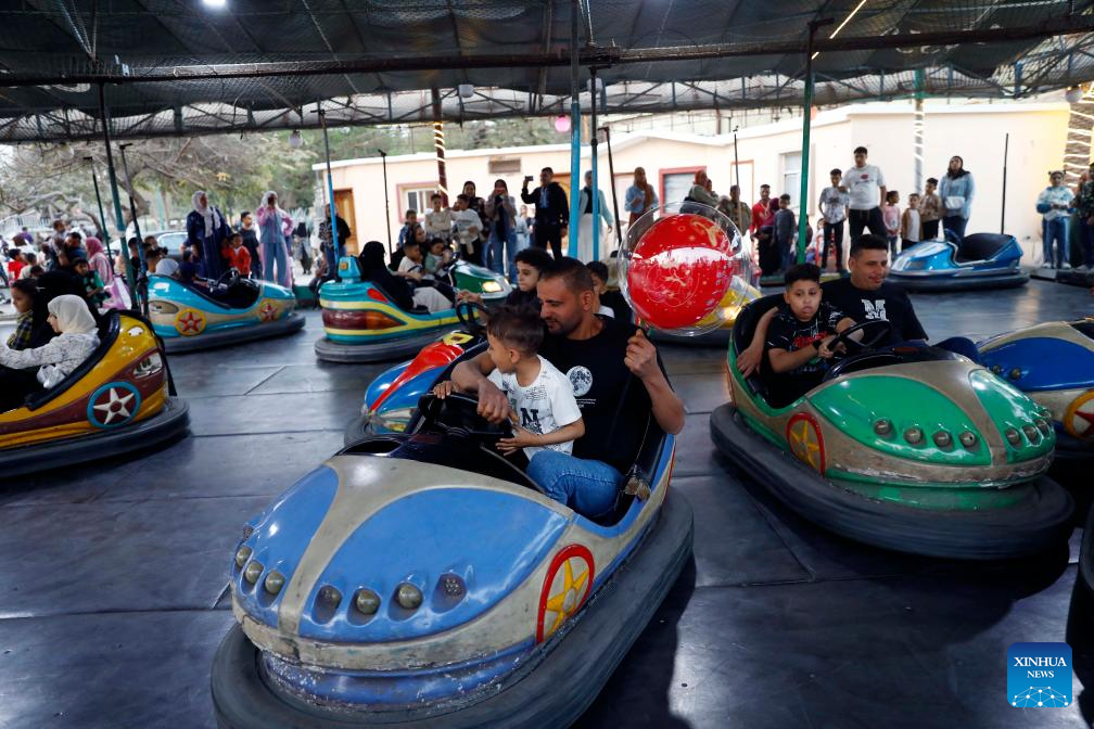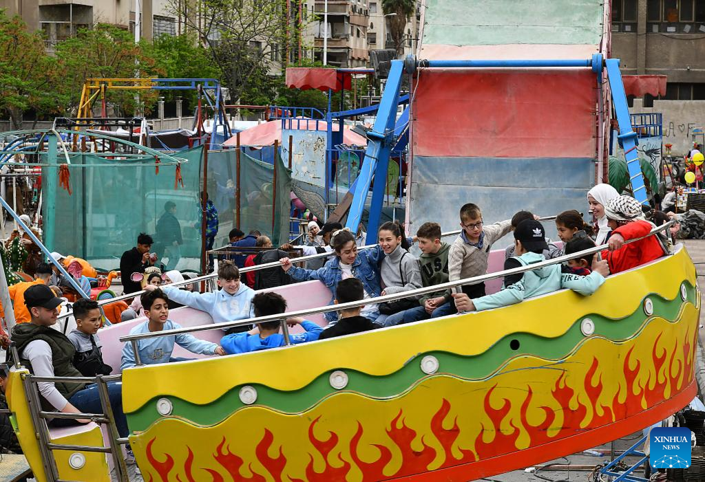People enjoy themselves at a park during the Eid al-Fitr holiday in Damascus, Syria, on April 1, 2025. (Photo by Ammar Safarjalani/Xinhua)