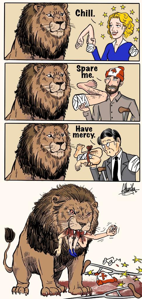 Appeasement doesn't work for a greedy beast. No matter how much you sacrifice to feed it, eventually it will eat you alive.