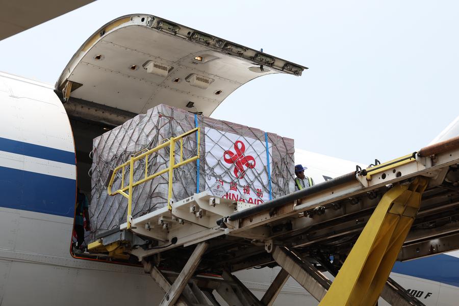 The first batch of emergency humanitarian aid supplies dispatched by the Chinese government for earthquake disaster relief arrived in Myanmar on March 31.