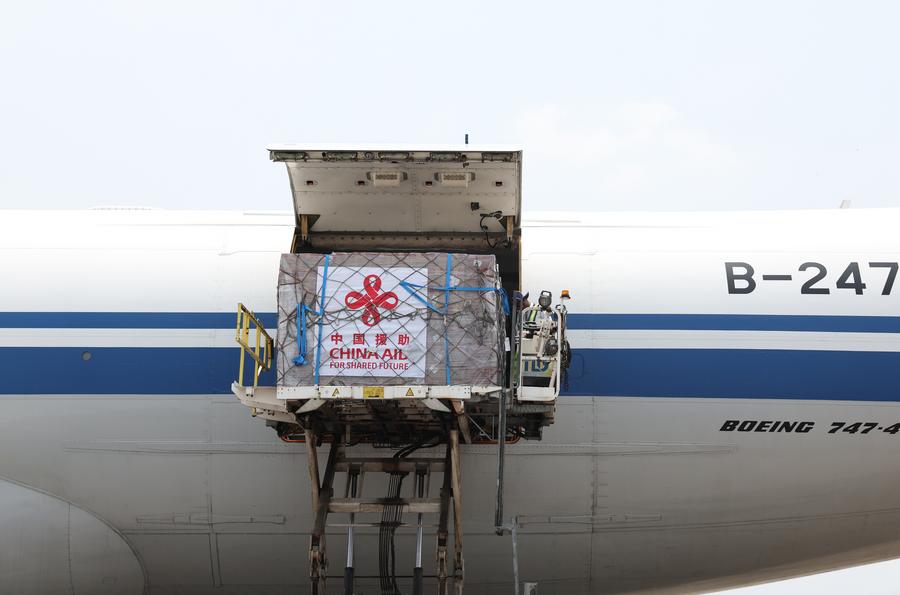 YANGON, April 3 (Xinhua) -- The second batch of emergency humanitarian aid supplies dispatched by the Chinese government arrived at Yangon International Airport in Myanmar on Thursday.