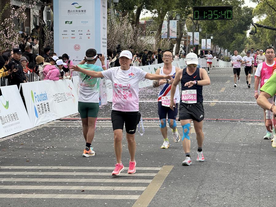 The Wuxi Marathon took place on March 23, with blooming cherry blossoms and stunning views of the Taihu Lake, China's third-largest freshwater lake, as major attractions for the 420,000 participants.