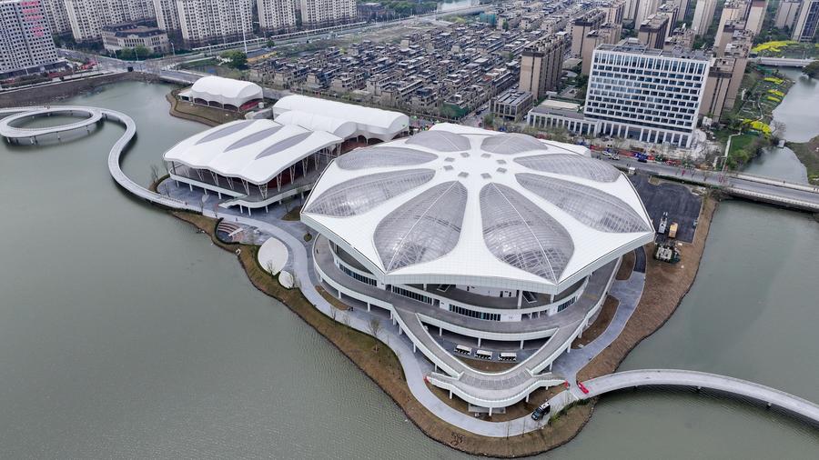 HANGZHOU, April 3 (Xinhua) -- On the picturesque shores of Taihu Lake, the Zhejiang Huzhou International Clay Tennis Center - the largest clay tennis facility in China - has officially opened. Boasting four hard courts, 14 Roland Garros-standard clay courts, a 5,000-seat main stadium, and a 2,000-seat secondary arena, the venue redefines tennis infrastructure in the country.