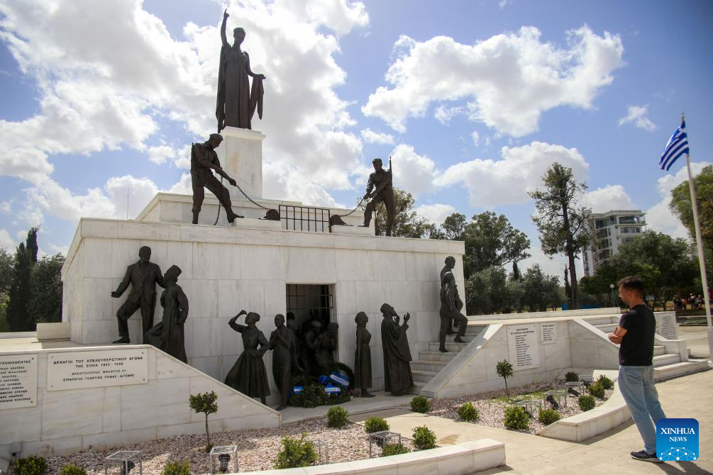 Cyprus on Tuesday marked the 70th anniversary of the EOKA (National Organization of Cypriot Fighters) struggle (1955-1959). The Liberty Monument, with a statue representing liberty atop, was erected in 1973 to honour the anti-British fighters. (Photo by George Christophorou/Xinhua)