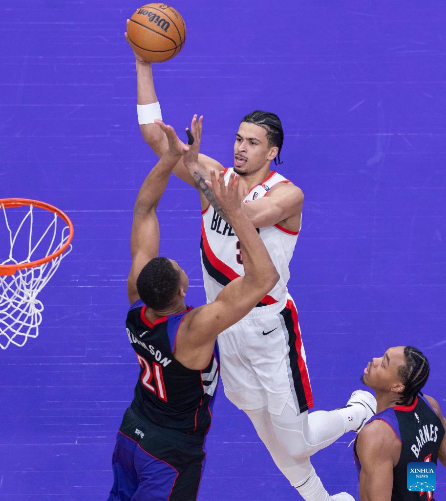 Toumani Camara (above) of Portland Trail Blazers goes for a layup during the 2024-2025 NBA regular season game between Toronto Raptors and Portland Trail Blazers in Toronto, Canada, on April 3, 2025. (Photo by Zou Zheng/Xinhua)