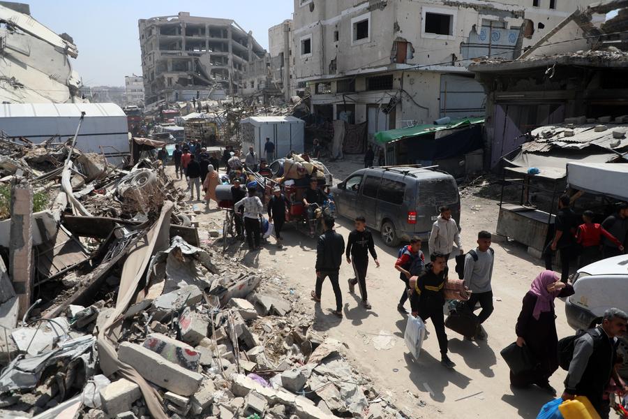 GAZA, April 4 (Xinhua) -- The Israeli army on Friday intensified ground operations in the Shuja'iyya neighborhood of Gaza City with heavy shelling, causing multiple casualties and mass displacement, according to Palestinian and Israeli sources.