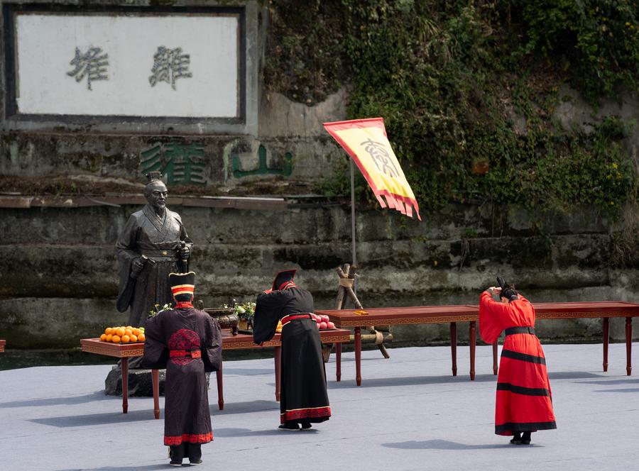 CHENGDU, April 4 (Xinhua) --The Dujiangyan water releasing festival was celebrated on Friday in Dujiangyan on the Tomb-sweeping Day, also known as Qingming Festival.