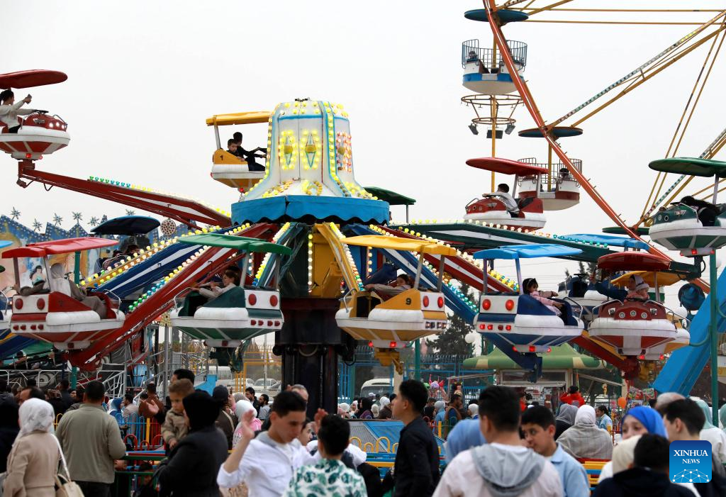 People have fun at an amusement park on the third day of the Eid Al-Fitr holiday in Damascus, Syria, April 2, 2025. (Photo by Ammar Safarjalani/Xinhua)