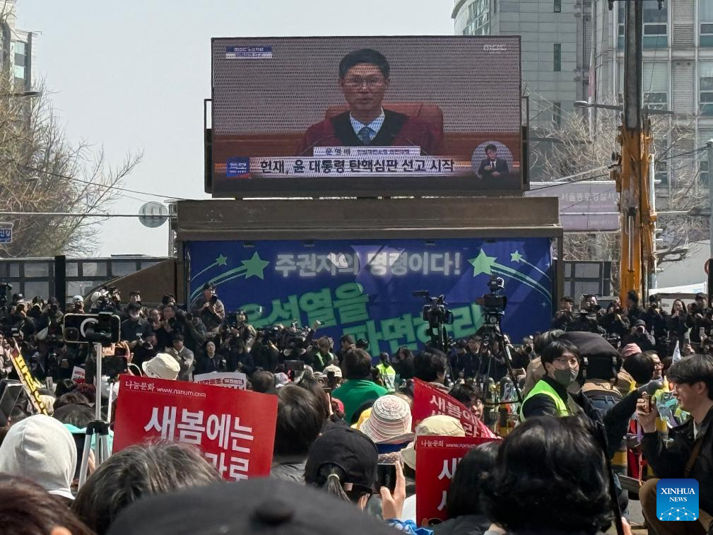 SEOUL, April 4 (Xinhua) -- South Korea's constitutional court upheld a motion by the National Assembly to impeach President Yoon Suk-yeol over his short-lived martial law imposition, a live TV broadcast showed Friday.
