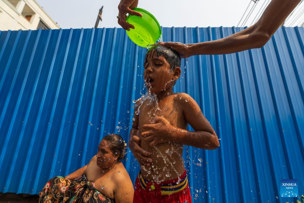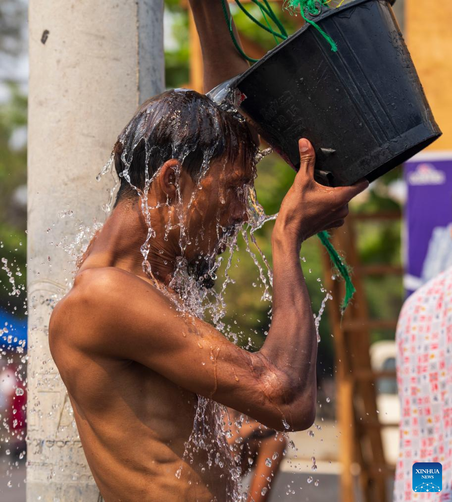 A man cools off at a temporary shelter in Mandalay, Myanmar, April 4, 2025. Myanmar's recent earthquake has caused severe casualties, with 3,301 deaths, 4,792 people injured, and 221 reported missing, according to the official media Myanmar Radio and Television on Friday. (Xinhua/Cai Yang)