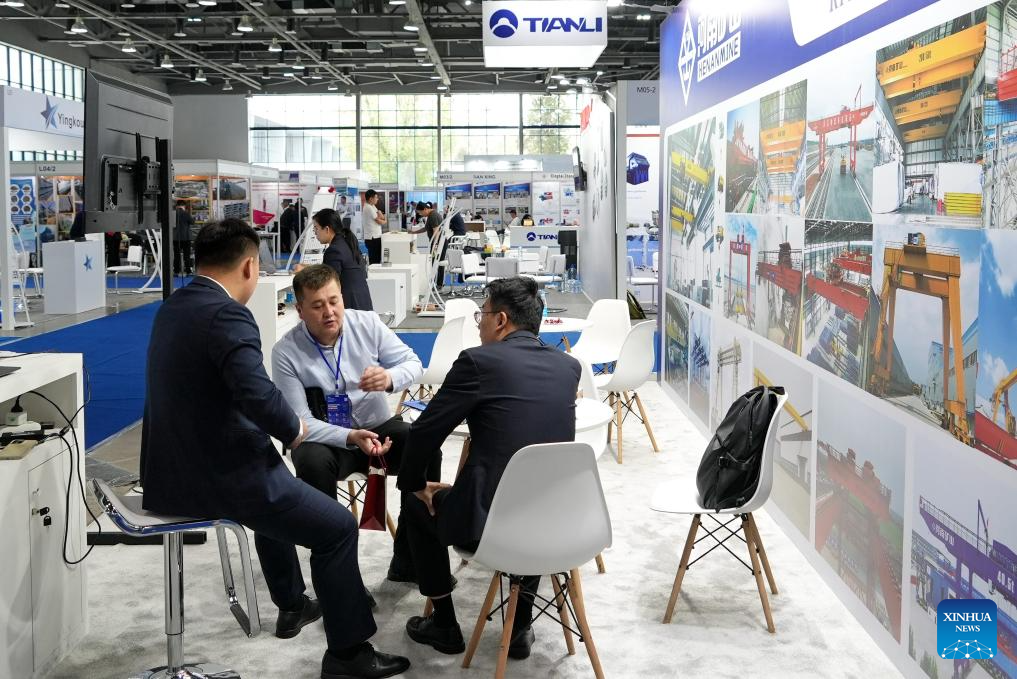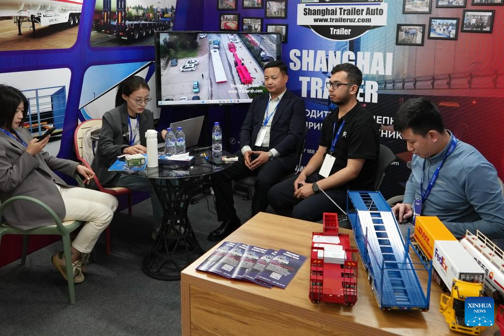 This photo taken on April 4, 2025 shows a scene at an international industrial exhibition held in Tashkent, Uzbekistan. The event, held here from April 2 to 4, focused on key sectors such as mining, metal processing, chemical industry, transportation, and industrial safety. (Photo by Zafar Khalilov/Xinhua)