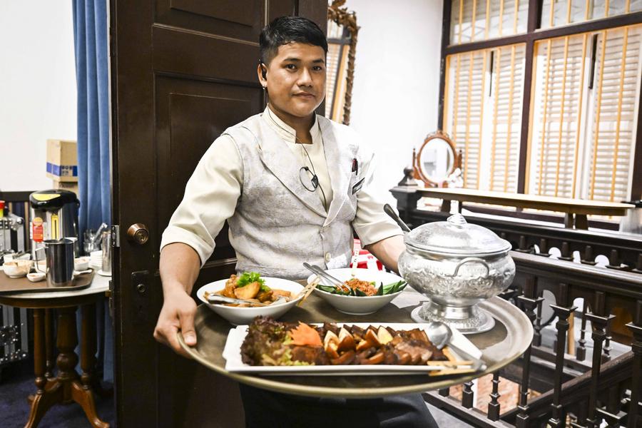 The owner of a Nyonya restaurant prepares condiments in Malacca, Malaysia, March 15, 2025. (Xinhua/Cheng Yiheng)A waiter carries dishes at a Nyonya restaurant in Malacca, Malaysia, March 14, 2025. (Xinhua/Cheng Yiheng)Photo taken on March 14, 2025 shows dishes at a Nyonya restaurant in Malacca, Malaysia. (Xinhua/Cheng Yiheng)The owner of a Nyonya restaurant serves dishes in Malacca, Malaysia, March 15, 2025. (Xinhua/Cheng Yiheng)The owner of a Nyonya restaurant cooks in Malacca, Malaysia, March 15, 2025. (Xinhua/Cheng Yiheng)Photo taken on March 15, 2025 shows traditional Nyonya rice cakes in Malacca, Malaysia. (Xinhua/Cheng Yiheng)Photo taken on March 14, 2025 shows a Nyonya restaurant in Malacca, Malaysia. (Xinhua/Cheng Yiheng)■