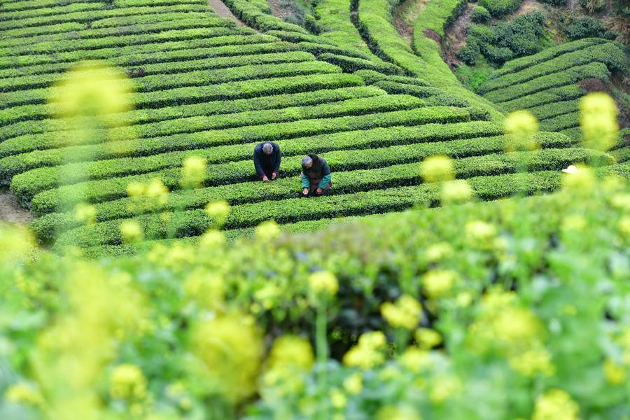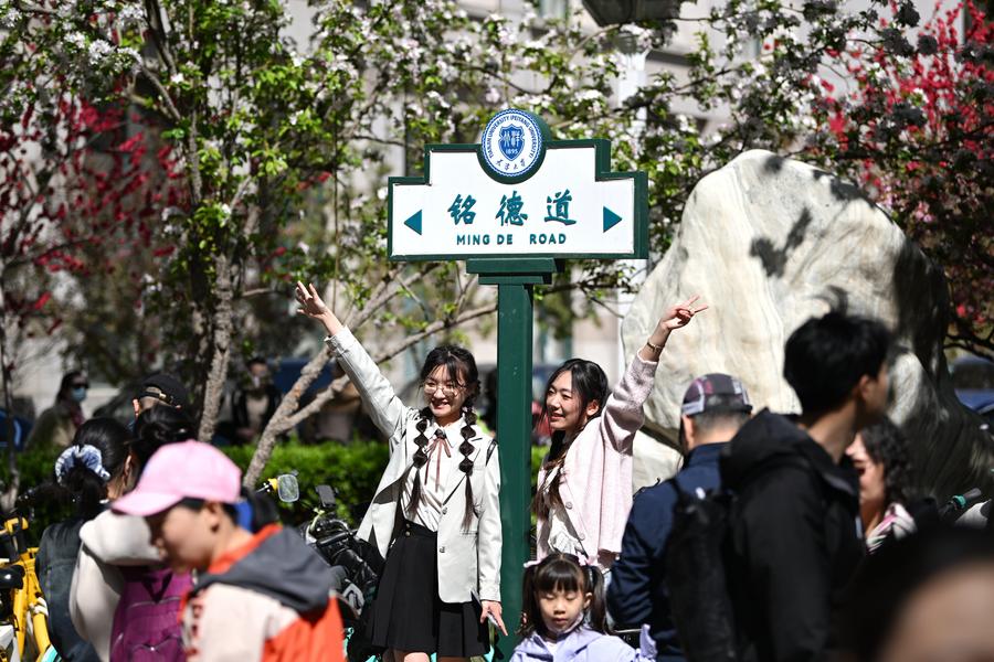 An aerial drone photo taken on April 5, 2025 shows a dawn view of the Mutianyu section of the Great Wall in Beijing, capital of China. Mutianyu and Jiankou sections of the Great Wall are popular destinations among mountain hikers and photographers. As spring comes, miles of tree blossoms add a touch of tenderness to the majestic Great Wall. (Xinhua/Chen Yehua)Visitors pose for photos at the Weijin Road campus of Tianjin University in north China's Tianjin, April 5, 2025. Tianjin University held a campus open day event upon the season of crabapple blossoms, attracting numerous citizens and tourists to enjoy the view and appreciate the beauty of the campus. The Weijin Road campus of Tianjin University currently hosts over 800 flowering crabapple trees, most of which are around 40 years old. The best viewing period for the crabapple blossoms this year is expected to be in early April, lasting for about ten days. (Xinhua/Li Ran)Farmers pick tea leaves at a tea garden in Changling Village of Zigui County, Yichang City, central China's Hubei Province, April 4, 2025. (Photo by Wang Huifu/Xinhua)An aerial drone photo taken on April 5, 2025 shows people enjoying their leisure time on the beach in Weihai City, east China's Shandong Province. Qingming Festival, or Tomb-Sweeping Day, fell on April 4 this year. It is a traditional Chinese festival during which people pay tribute to the dead and worship their ancestors. The holiday also provides a short break for China's residents to engage in outdoor activities or go sightseeing. (Photo by Zhu Chunxiao/Xinhua)Tourists visit Hainan Ocean Paradise Resort in Lingshui Li Autonomous County in south China's Hainan Province, April 4, 2025. (Xinhua/Guo Cheng)(L to R) Gold medalist Chen Yuxi, Chen Yiwen, Wang Zongyuan, Cheng Zilong of China pose after the victory ceremony of the mixed 3m&10m team final at the World Aquatics Diving World Cup 2025 in Guadalajara, Jalisco, Mexico, on April 4, 2025. China claimed the opening gold medal in the mixed team event at the World Aquatics Diving World Cup in Guadalajara on Friday. (Photo by Diana Marquez/Xinhua)Staff members walk past an electronic display board at the London Stock Exchange in London, Britain, April 3, 2025. China issued its first-ever overseas RMB-denominated sovereign green bond in London on April 2 London Time, China's Ministry of Finance said on Thursday. The deal totals 6 billion yuan (about 833.33 million U.S. dollars), including 3 billion yuan for a three-year term with an interest rate of 1.88 percent, and 3 billion yuan for a five-year term at an interest rate of 1.93 percent. (Xinhua/Li Ying)A man participates in the Pacu Jawi, a traditional bull race, at Nagari Tabek, in Tanah Datar of West Sumatra, Indonesia, April 5, 2025. The Pacu Jawi is held annually in muddy rice fields to celebrate the end of the harvest season. (Photo by Yorri Farli/Xinhua)People enjoy leisure time during Eid al-Fitr holiday at Carita beach in Pandeglang Regency, Banten Province, Indonesia, April 5, 2025. (Photo by Agung Supriyanto/Xinhua)■