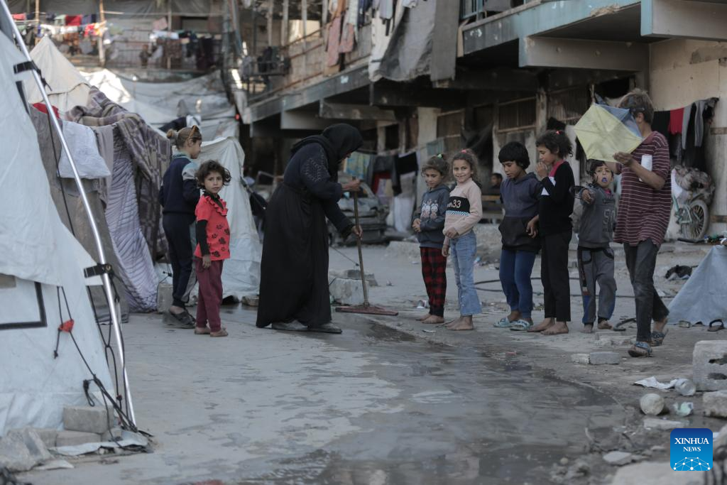 Displaced Palestinians are seen at a school-turned shelter in Beit Lahia in the northern Gaza Strip, on April 5, 2025. (Photo by Abdul Rahman Salama/Xinhua)