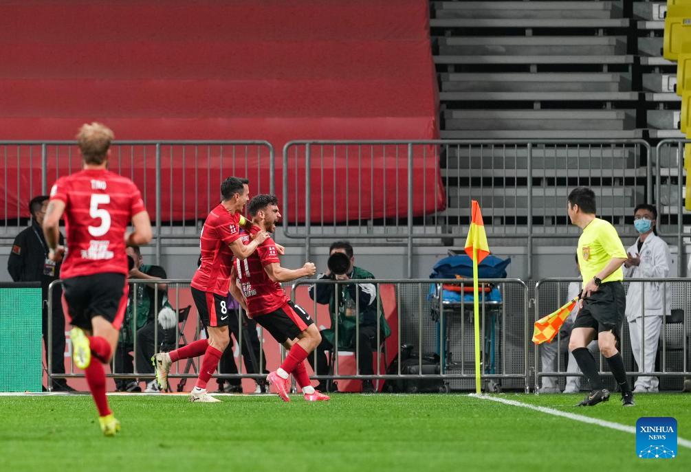 Yahav Gurfinkel (3rd L) of Chengdu Rongcheng celebrates scoring during the 5th round match between Chengdu Rongcheng and Dalian Yingbo at the 2025 season Chinese Football Super League (CSL) in Chengdu, southwest China's Sichuan Province, April 6, 2025. (Xinhua/Wang Xi)