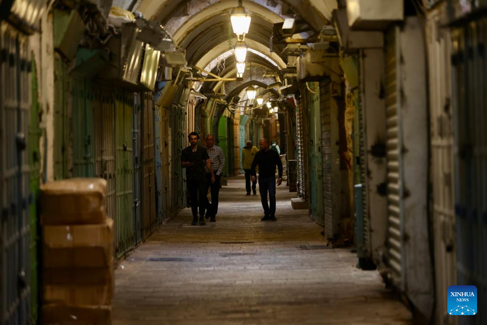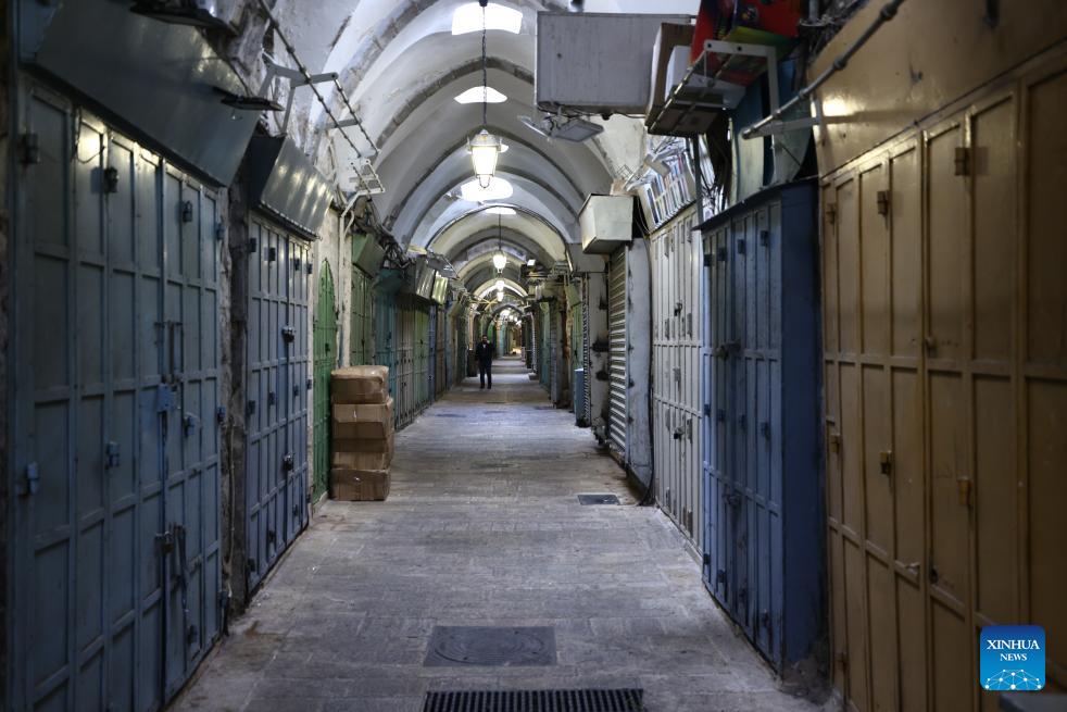 Shops are seen closed during a general strike condemning Israeli continuously bombardment on Gaza and military operations in the West Bank, in Jerusalem's Old City on April 7, 2025. (Photo by Jamal Awad/Xinhua)