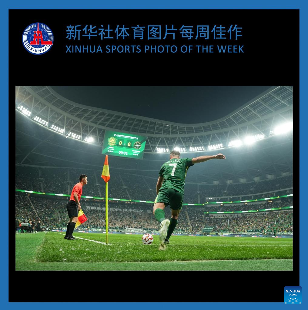 XINHUA SPORTS PHOTO OF THE WEEK (from March 31 to April 6, 2025) TRANSMITTED on April 7, 2025. Sai Erjiniao of Beijing Guoan takes a corner kick during the 5th round match between Beijing Guoan and Zhejiang Greentown at the 2025 season Chinese Football Super League (CSL) in Beijing, China, April 6, 2025. (Photo by Na Yuqi/Xinhua)